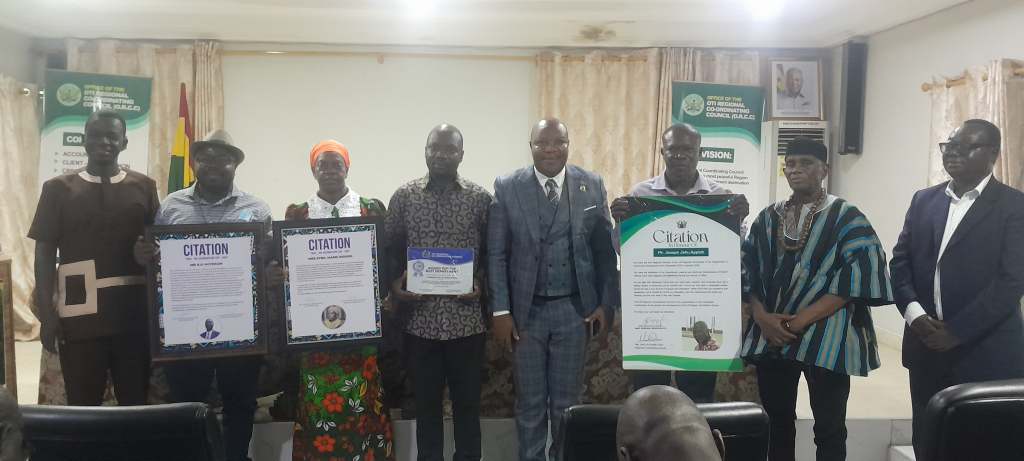 Long time service in Oti Region, K O Agyarkum, former Regional commander of NIB, Dr Osei Kufour Alfred, former Regional Health Director; former Regional Environmental Health Analyst reorganized of her outstanding service; Joseph Gyau Appiah (retired), former Community Development Director of the region.
